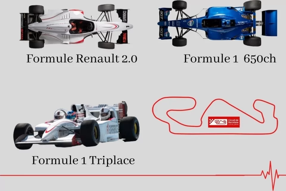 Découvrez les sensations de pilotage sur le mythique circuit de Barcelone au volant d'une Formule Renault 2.0 avant de vous lancer dans l'expérience ultime de la Formule 1, puis laissez vous embarquez dans notre triplace !